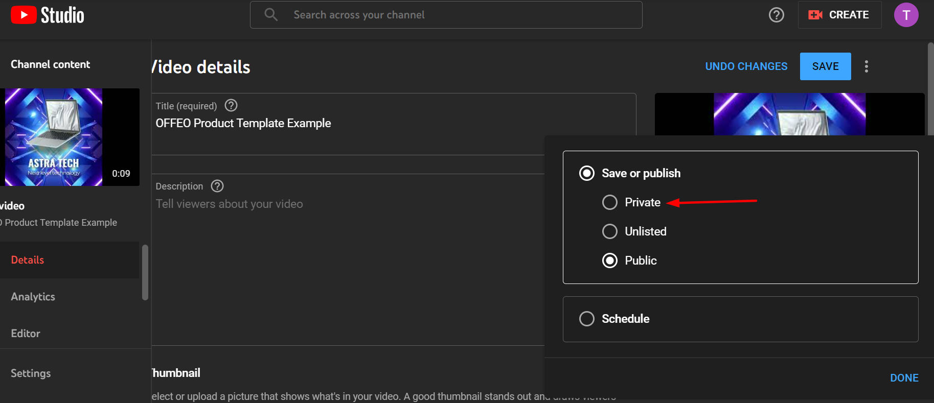 Click the salve button, and you're done! You've successfully uploaded a private video and it won't exist visible to anyone unless you give them admission. If at any betoken yous desire to let anybody watch your private video, yous tin can but switch the visibility choice from Private to either Public or Schedule as Public.